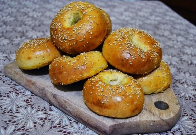 - Cuocere i bagels 2 minuti per lato, far asciugare su un panno pulito;