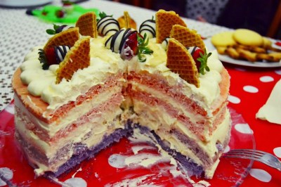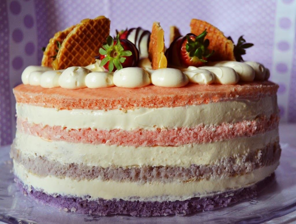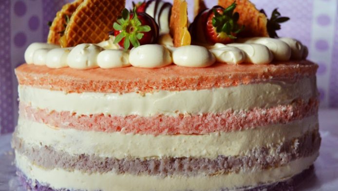 - Spatolare i lati della torta lasciando ben in vista gli strati colorati.