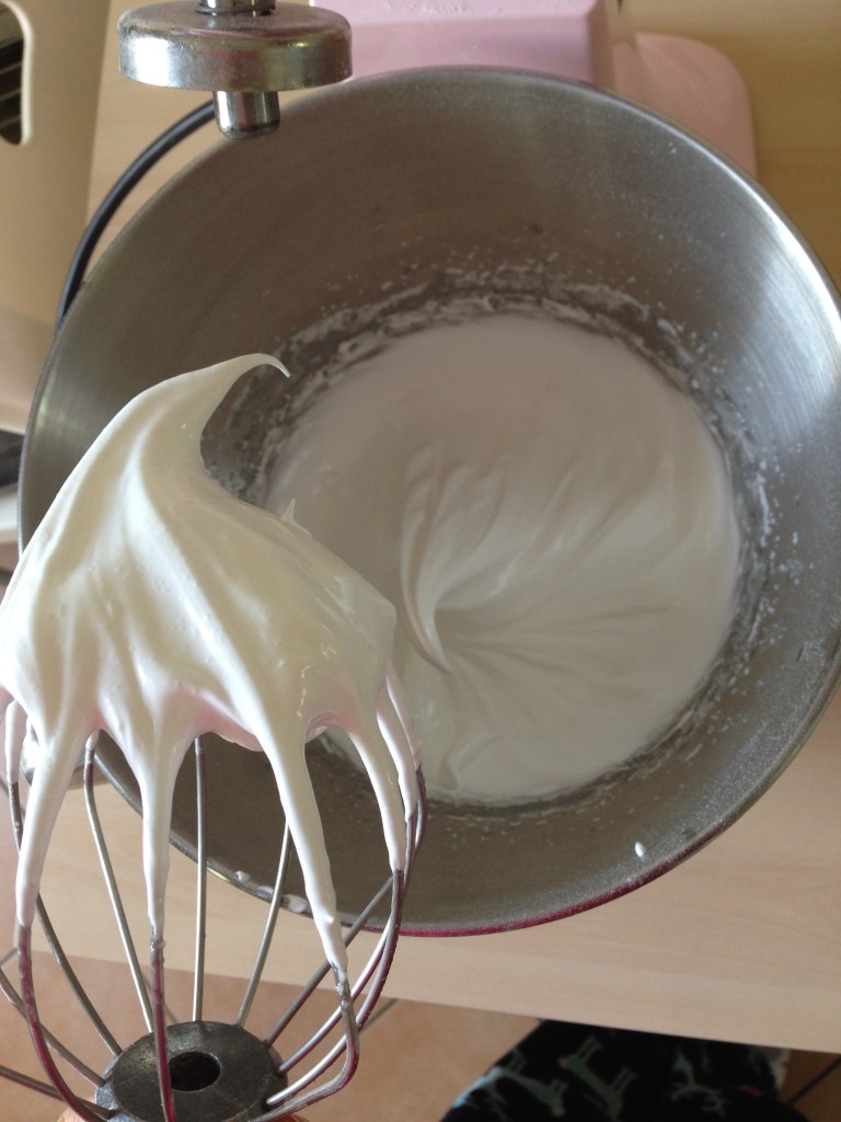 - Uno dei fattori che indica la buona riuscita della meringa è la lucidità, la compattezza e, estraendo le fruste, dovrà formarsi il classico becco d’anatra (foto in allegato dal blog Zoe’s Bakery);