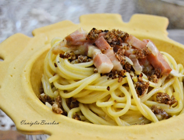 - Prima di servire, riducete in piccoli cubetti una fetta di pane di segale e tostatela, questo darà la nota crispy alla vostra carbonara!