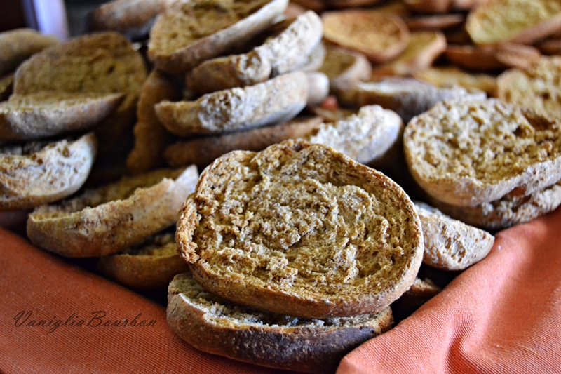 - Prelevare dal forno le frise pugliesi integrali alla birra, tagliarle a metà longitudinalmente e riporle per altri 20-25 minuti. Devono “biscottarsi” per bene per acquisire croccantezza.
