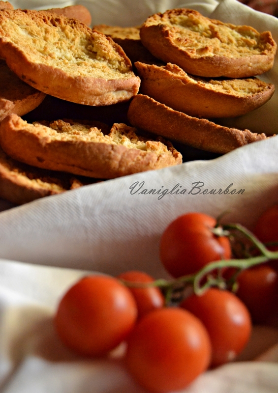 - Prelevare dal forno le frise, tagliarle a metà longitudinalmente e riporle per altri 20-25 minuti. Devono “biscottarsi” per bene per acquisire croccantezza.