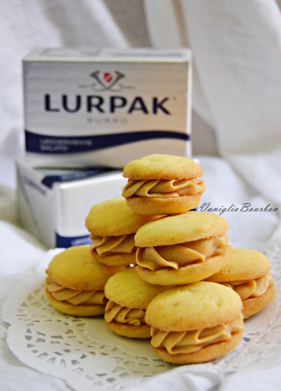 I biscottini di frolla montata al caramello salato dovranno risultare leggermente dorati; - Raffreddati, potete gustarli accompagnati col vostro thè/tisana/caffè preferiti spolverizzati semplicemente con dello zucchero a velo oppure accoppiarli come ho fatto io.