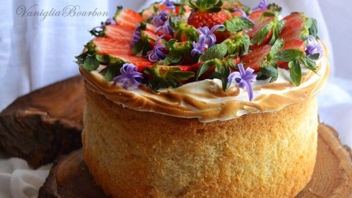Oggi vi lascio la ricetta della mia chiffon cake al prosecco senza glutine che ho meringato con una meringa all’italiana fiammeggiata e completato semplicemente con delle fragole fresche.