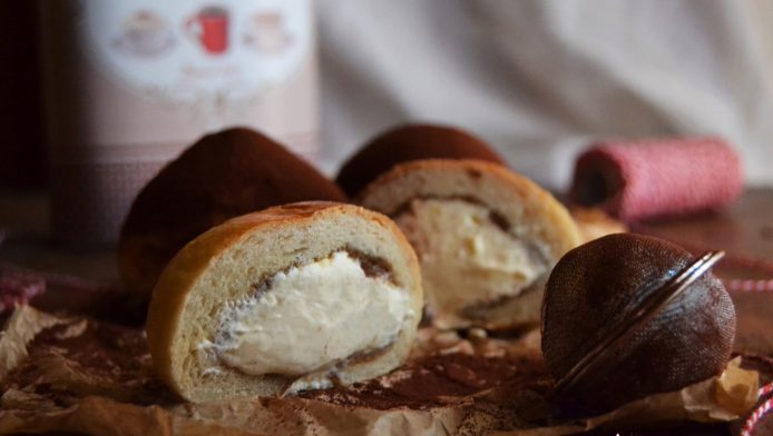 - Infilzare la brioche del bombamisù alla base e “spremere” la bagna all’interno;